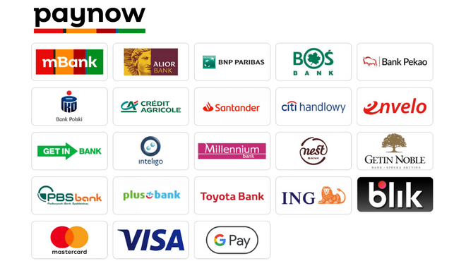 Składając zamówienia w naszym sklepie możesz skorzystać z następujących form płatności: